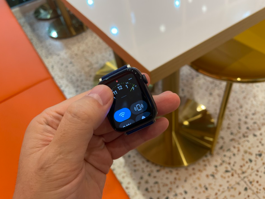 이렇게 하면 워치 페이스 상단에 애플워치 물방울 모양의 아이콘이 나타나며 현재 활성화된 상태임을 알 수 있습니다.