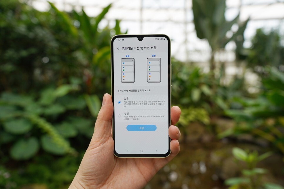 또한, 120Hz 화면 주사율을 갤럭시 A34 5G에도 적용하여, 화면 전환 시 끊김 없이 부드러운 시청이 가능해 눈의 피로를 줄여준다는 점도 장점입니다.