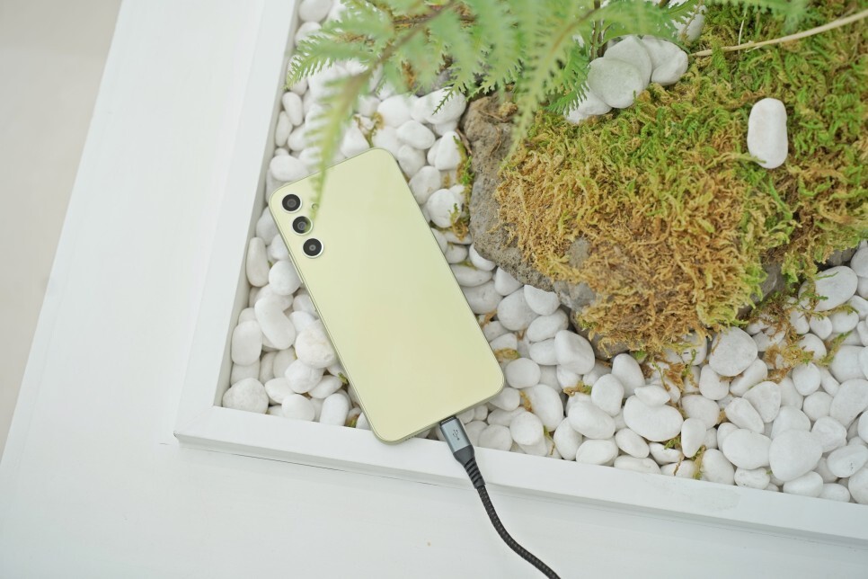 일체형 배터리가 적용된 이후로 충전 타이밍을 놓치면 배터리 부족에 시달리게 되는데요, 갤럭시 A34 5G는 무려 5,000mAh의 대용량 배터리가 적용되어 하루 종일 넉넉하게 사용할 수 있습니다.