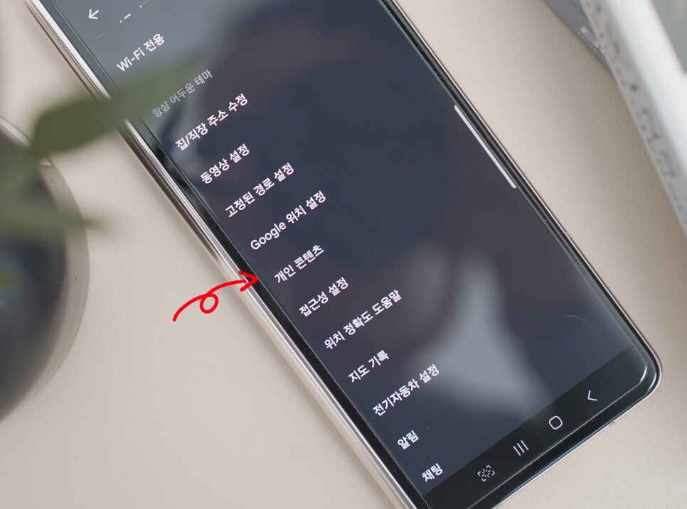 화면 하단에 [설정]을 누른 후 [개인 콘텐츠]를 터치해 주세요.