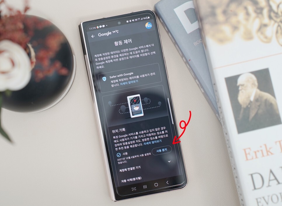 위치 기록에서 [사용 중지] 버튼을 클릭합니다.