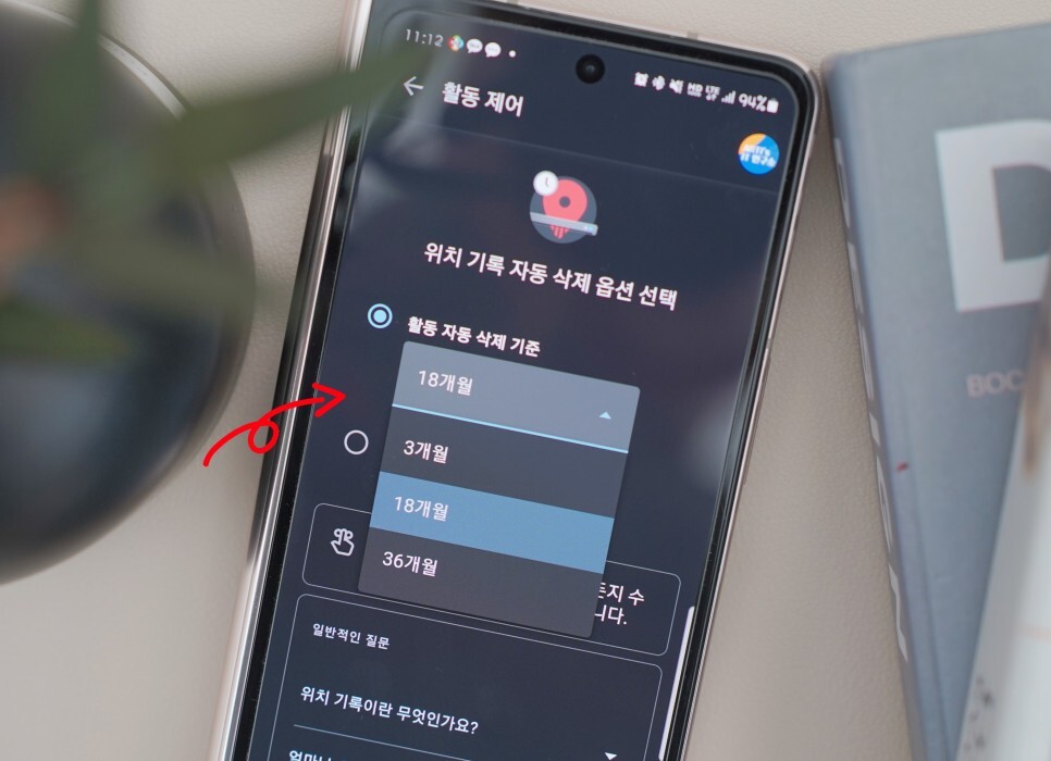 그리고, 기준을 몇 개월로 할 것인지 3/18/36 개월 중에서 선택하면 설정 기간 이후에는 자동으로 데이터가 지워집니다.