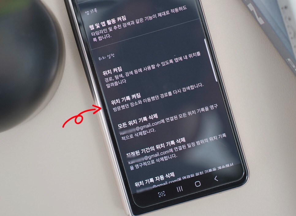 같은 화면에서 [위치 기록 켜짐] 항목을 눌러줍니다.