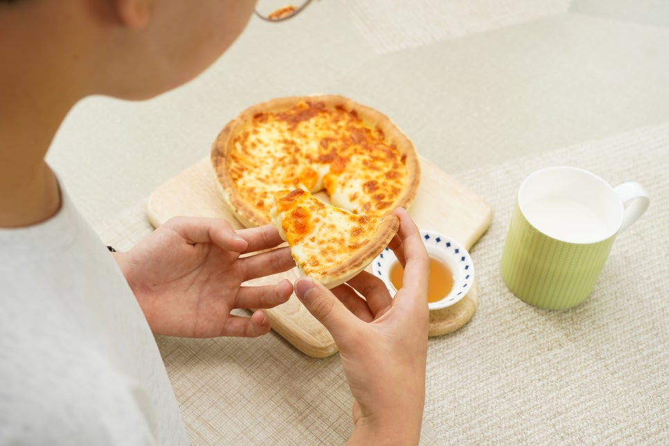 뒤돌아서면 배고프다고 먹을 것을 찾는 성장기 아이의 간식을 위해 인스턴트 피자도 간편하게 조리할 수 있죠! 조리방법에 에어프리이어 사용 시 시간과 온도가 나와 있으니 그대로 세팅하고 작동만 하면 맛있는 피자가 완성됩니다.