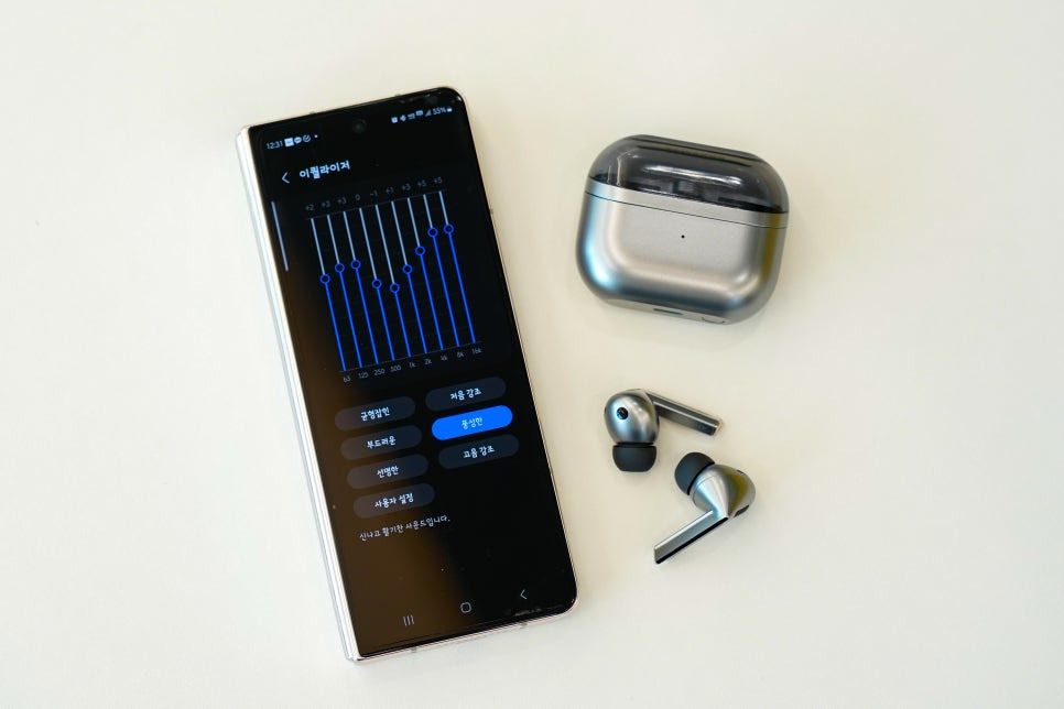 특히, 갤럭시 AI 기반의 적응형 노이즈 제거 기능은 주변 환경에 따라 자동으로 노이즈 차단을 조절해 주는데, 이게 꽤 유용했습니다. 그리고 주변 사운드 모드도 자연스럽게 소리를 들려줘서, 편의점이나 카페 등에서 물건을 구입할 때도 유닛을 빼지 않아도 되니 편리합니다.